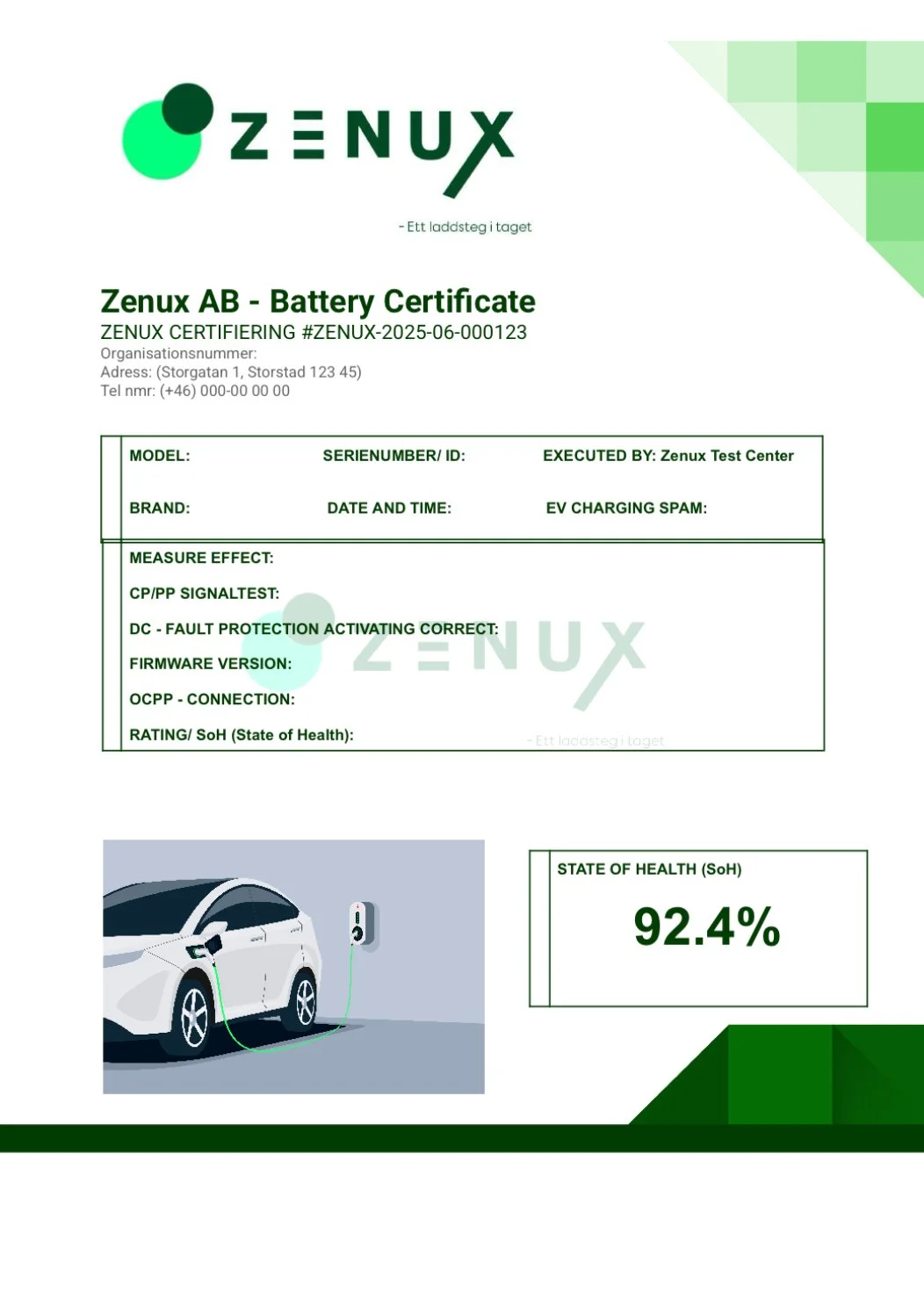 Varje laddbox får sedan sitt eget certifikat där all framtagen information visas, detta vill vi göra för att främja transparens gentemot våra kunder och fastställa en god och trygg handel.